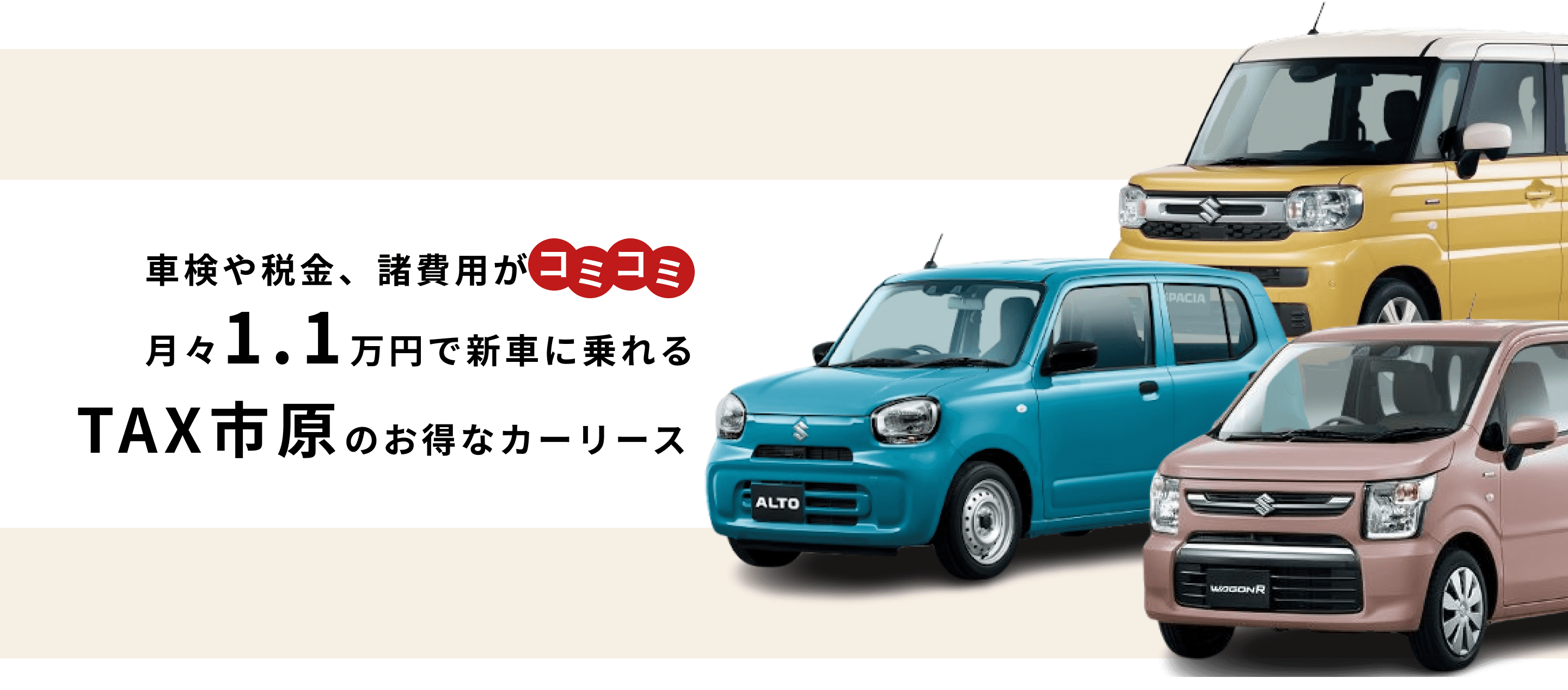 タックス市原では、軽自動車が月々1万円からお得に乗れるカーリースをおすすめしています。