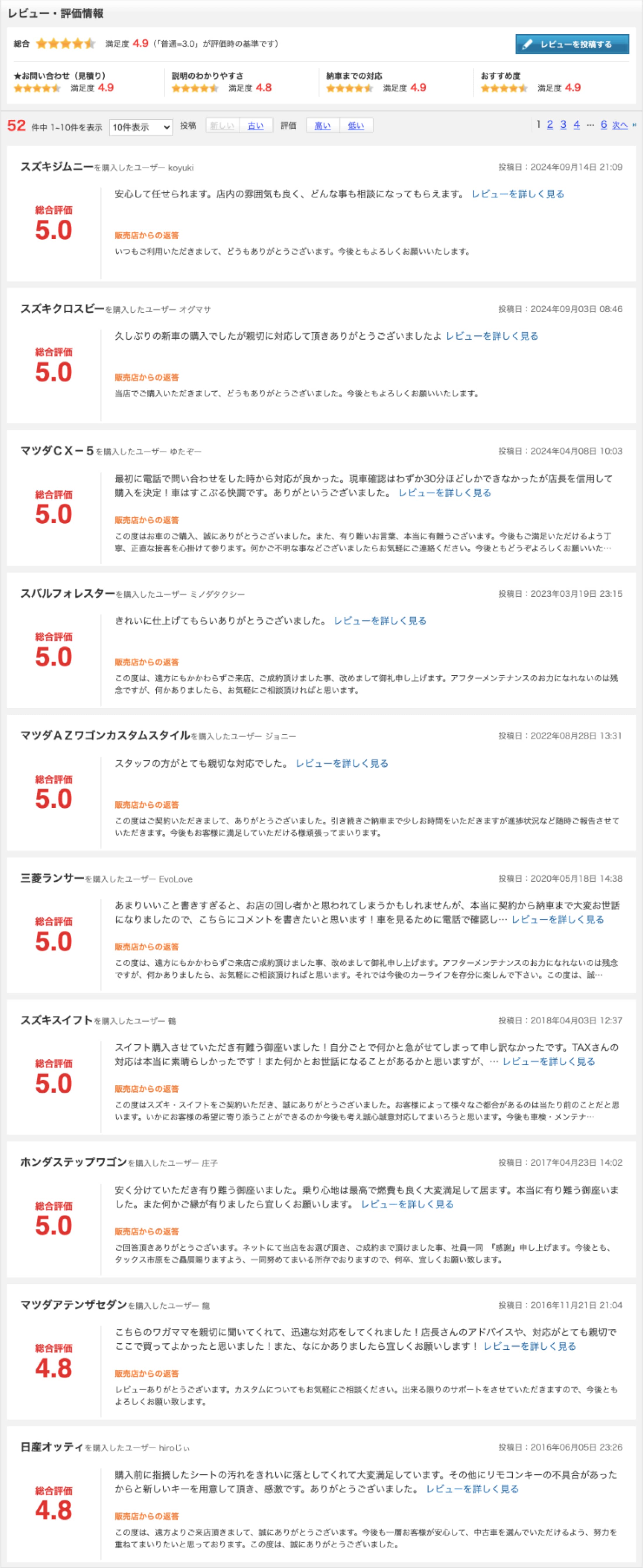 当社は中古車販売業界で最高の体験を提供することに尽力しています。お客様一人ひとりに最適な車を提供し、信頼と満足を築くことを心掛けています。また、社員が自信を持って成長できる環境を大切にし、地域社会への貢献も忘れません。私たちの車がお客様の人生に価値を加え、素晴らしい旅の一部となることを願っています。